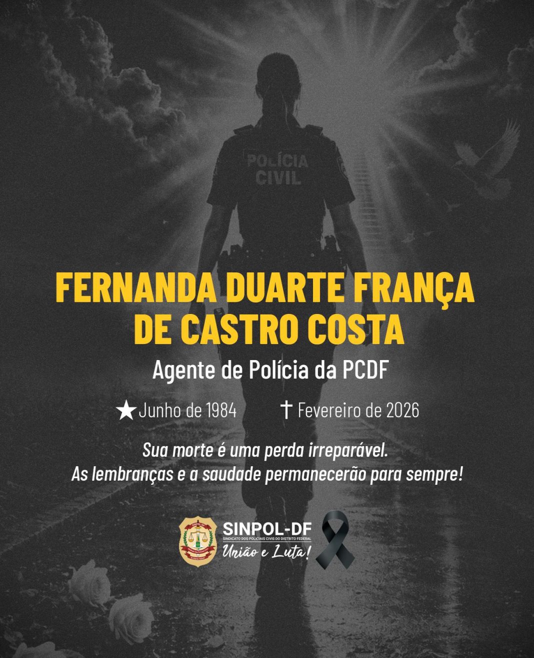 Neste momento de luto, o Sinpol-DF manifesta sua mais sincera solidariedade aos familiares, amigos e colegas de trabalho, desejando força para enfrentar uma perda tão dolorosa.